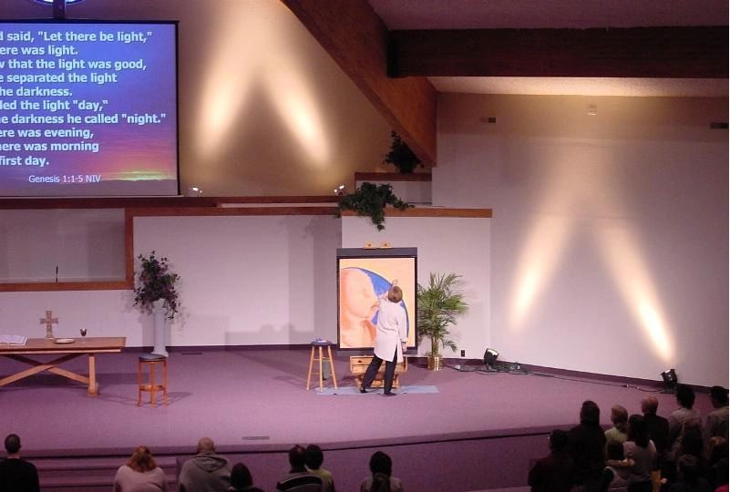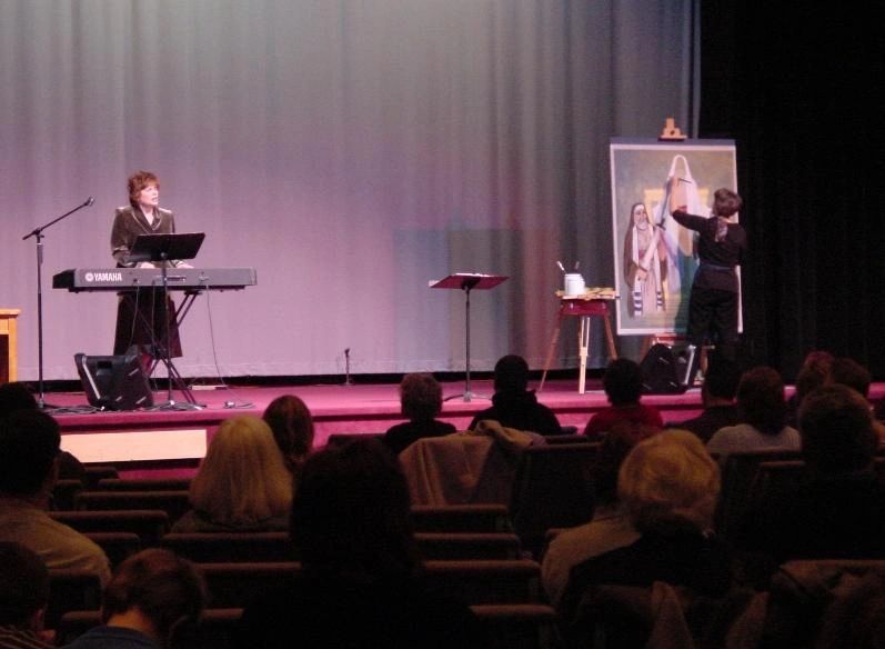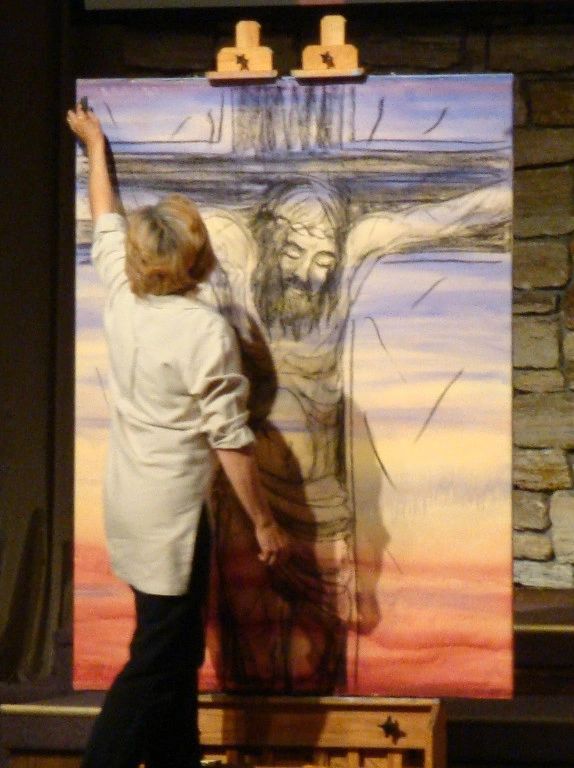 Still a relatively new art form, live paintings capture the attention of the audience! As Jennifer paints along with music and/or sermons/lectures, the significance of the message becomes much clearer. Like a child looking at the pictures in a book as someone reads it to them, the story becomes etched into their heart and mind. Often her paintings have a sense of surpris